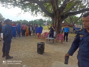 म्यादी प्रहरीका जवानहरु प्रहरी एउटा यस्तो साथीहो जस्ले सारा भेदभाव छोडेर देशको लागी अनुसासनमा रही सुरक्षा दिने गर्दछ । यो पोशाक कसैको देन नभई हामीले परिश्रम गरेर लयाएको फल हो । त्यसैले कसैको डर धाक त्रासमा नभई ईम्नदारीता, कर्तब्यनिष्ट अनुसासनमा रहि देशको अर्थ तन्त्र नै बदल दिने मंसिरमा ४ गते हुने प्रतिनिधि सभा सदस्य र प्रदेश सभा सदस्य निर्वाचनमा सहभागी भै सफल बनाउन प्रम’ख प्रहरी उपरिक्षक होबिन्द्र बोगटी अनुरोध गर्नु भयो ।