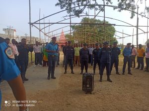 सो तालिमको अन्तिम चरणको समापन प्रसौनी गाउंपालिका वडा नं.–३ नौतन पोखरीको ड्रिलमा जिल्ला प्रहरी कार्यालय बाराका प्रमूख प्रहरी उपरिक्षक होबिन्द्र बोगटी ईलाका प्रहरी कार्यालय प्रसौनीका प्रहरी निरिक्षक नरेन्द्र कुमार बोगटीले गरेका छन ।