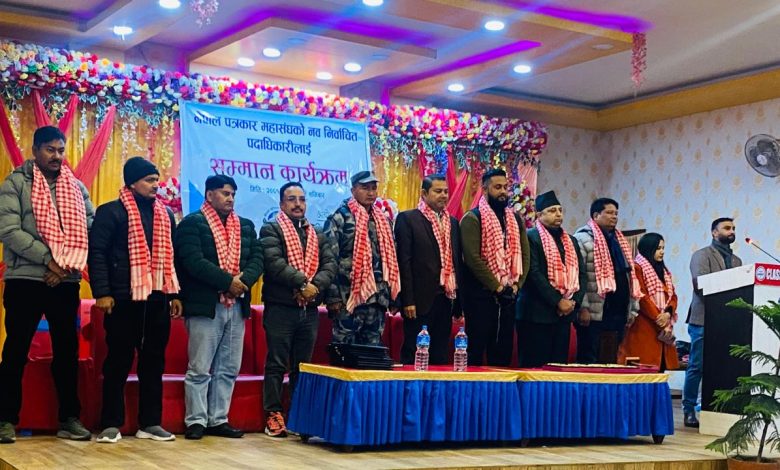 वीरगञ्ज । नेपाल मुस्लिम पत्रकार संघ पर्साले नेपाल पत्रकार महासंघमा निर्वाचित पदाधिकारी तथा सदस्यहरूलाई सम्मान गरेको छ । वीरगन्जको क्लासिक बंक्वेटमा आज आयोजना गरेको कार्यक्रममा सम्मान गरेको हो ।