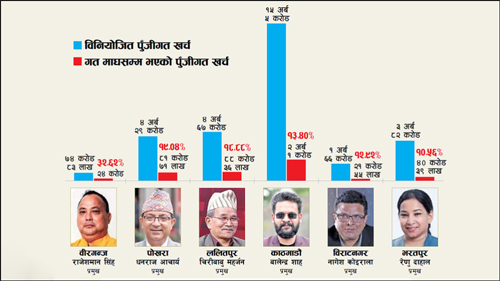 गत साउनदेखि माघसम्ममा ६ महानगरमध्ये सबैभन्दा बढी खर्च गर्नेमा वीरगन्ज र सबैभन्दा कम गर्नेमा भरतपुर देखिएको छ । विनियोजित पुँजीगत बजेटमध्ये वीरगन्जले ३२.६२ प्रतिशत खर्चेको छ भने भरतपुरको खर्च १०.५६ प्रतिशत मात्र छ । वीरगन्ज महानगरले पुँजीगततर्फ ७४ करोड ८३ लाख विनियोजन गरेकामा २४ करोड ४१ लाख रुपैयाँ खर्च गरेको छ । यो वर्ष ३ अर्ब ८२ करोड ४८ लाख ८० हजार रुपैयाँ विकास खर्च छुट्याएको भरतपुरले भने ४० करोड ३९ लाख रुपैयाँ मात्र खर्च गर्न सकेको छ । गत आर्थिक वर्षमा साउन–माघसम्म वीरगन्जले ३४.३१ प्रतिशत र भरतपुरले १७.९१ प्रतिशत पुँजीगत खर्च गरेको थियो ।